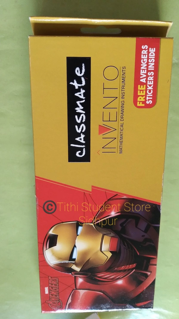 Strong durable box contains : compass,divider,set square 45 set square 60 scale 15cm,protector 180 pencil,Eraser,sharpner. Free : Avengers Stickers.
