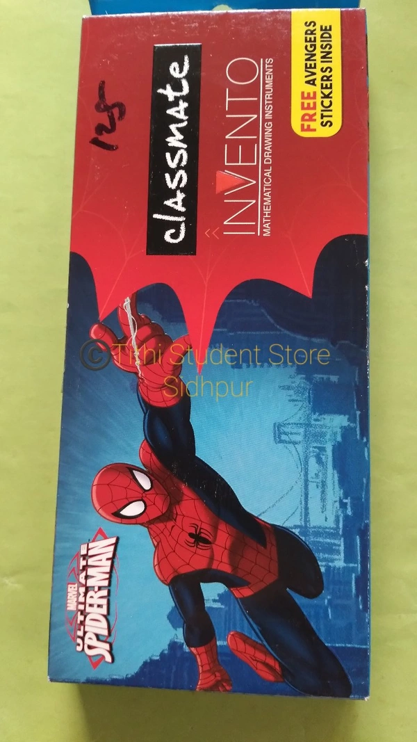 Strong durable box contains : compass,divider,set square 45 set square 60 scale 15cm,protector 180 pencil,Eraser,sharpner. Free : Avengers Stickers.