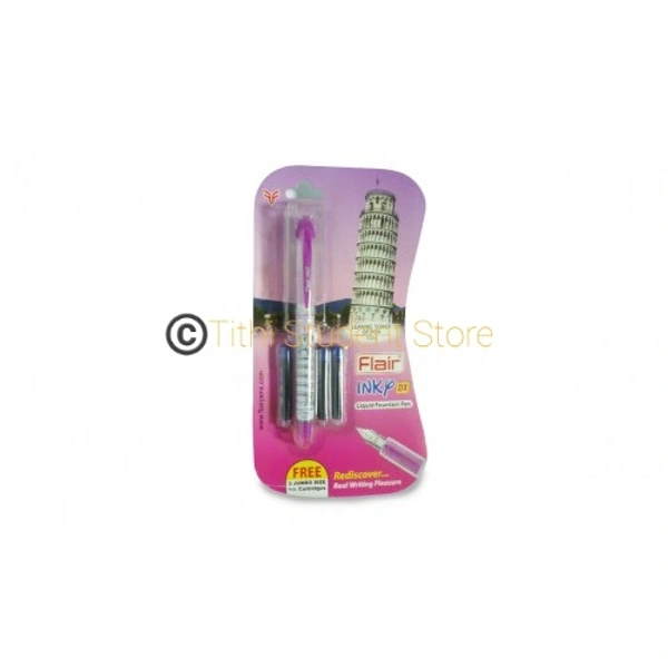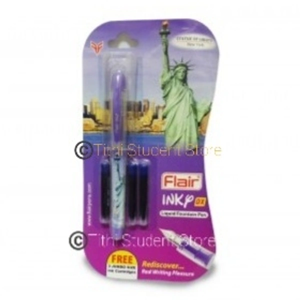 Get real writing pleasure with this Flair Inky DX Fountain Pen. This pen comes with 3 jombo size ink cartridges that gives a longer life to this pen.