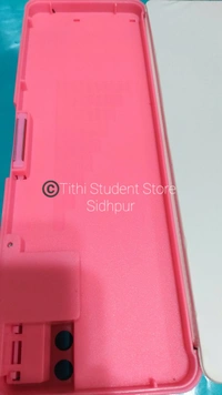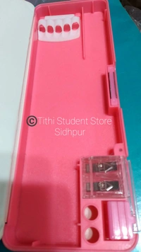 Switch operated sharpner lead. Two pen stands. Two side compartment. Spacious and convenient. Attractive pink theme.