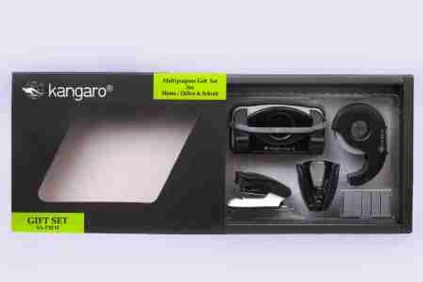 Best Gift to give. Attractive package. Contains: 1. Stepler 2. Perforator 3. Tape Dispenser 4. Staple Remover 5.1000 Staples