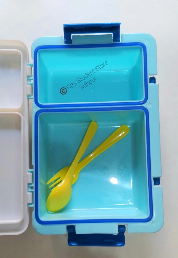20×13×6 cm approx. High quality food grade vergin plastic used. With locking system. Leak proof. Two compartment.