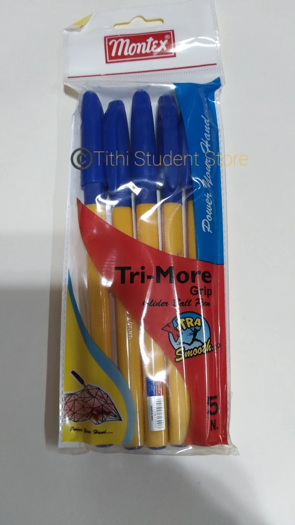 Montex Tri-More Grip Ball Pen 5 Piece Pack