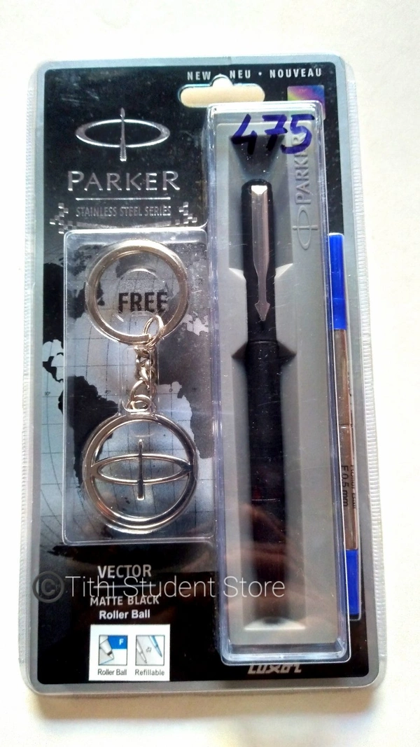 Parker Vector Matte Black SS + Parker Logo Keychain Free