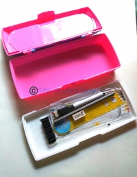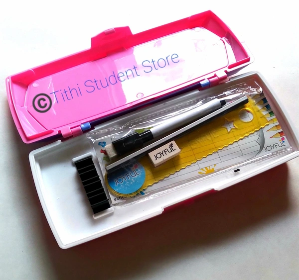 ☆White Board ☆ Pencil Organizer tray ☆ Big Main Compartment to accommodate all your school stuff ☆ Supreme Quality ☆ Locking systems to avoid sudden opening of box ☆ Attractive Title ☆ Contains one pencil, Eraser, ruler and white board pen
